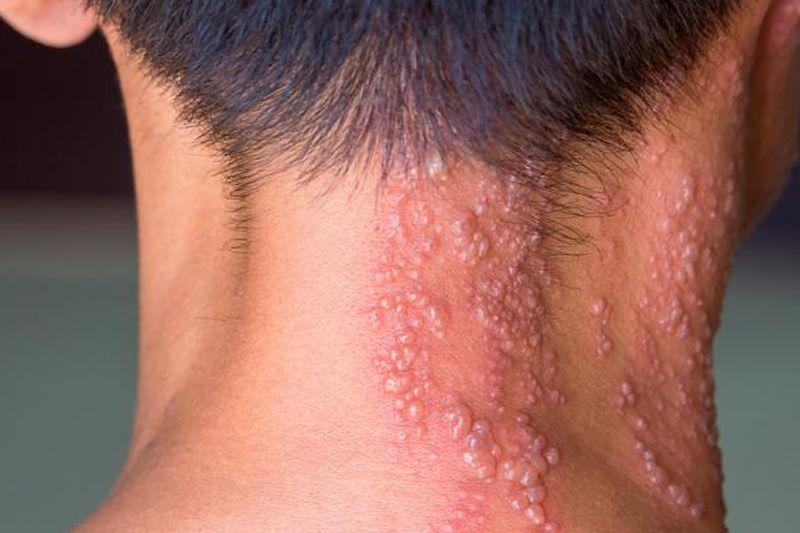Hình 1: Zona thần kinh gây các mảng mụn nước trên da, khiến người bệnh cảm thấy đau, rát, ngứa (nguồn: internet)